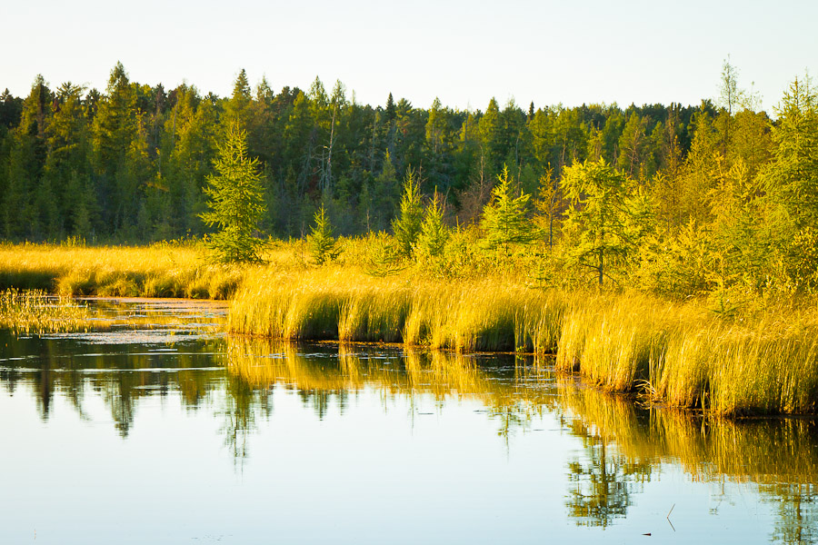 It was perfect timing for the perfect spot. The golden light of the sunset emphasized the emerging golds in the tamarack and grasses surrounding the pond.