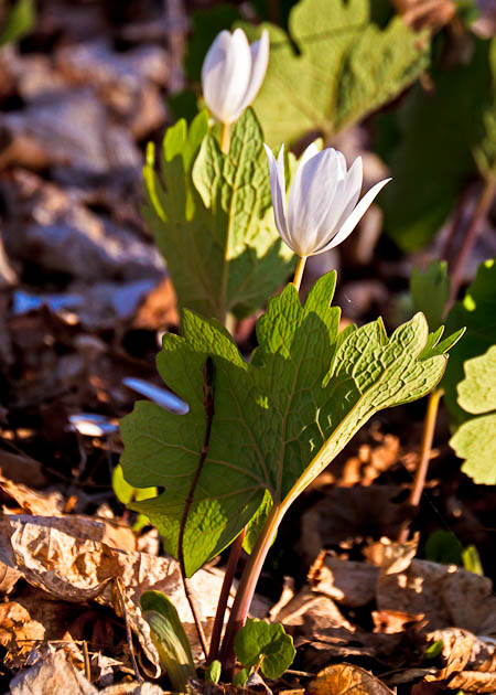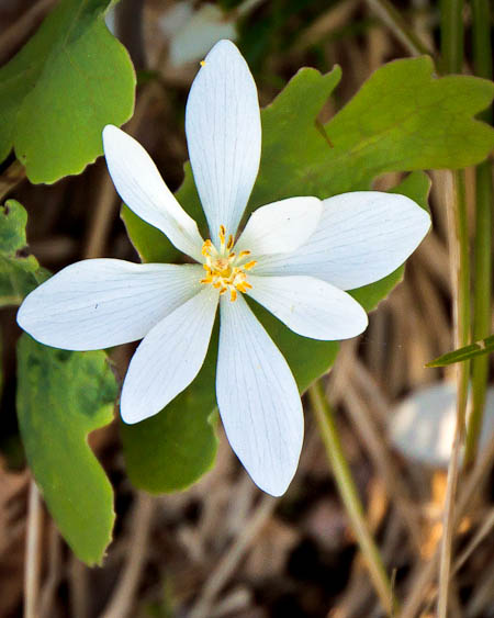 While bloodroot leaves continue to grow after the blossom is spent and can be found all summer, the time period for seeing them in bloom is a short stretch in early spring. They are at their peak right now (May 1st) – I recommend you get out there and check ‘um out. (Bring your cameras.)